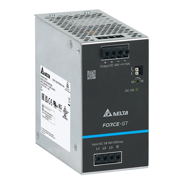 Delta ergänzt das neueste 48-V-Modell für sein High-End-DIN-Schienen-Netzteil der Force-GT-Serie (3-Phasen-Typ) und bietet Kunden erweiterte Spannungsoptionen. Das neue 48-V-Modell ist mit einer Leistung von 480 W und 960 W erhältlich und liefert eine zuverlässige 48-V-Ausgangsspannung, die für fortschrittliche, hochstabile Industrieanwendungen wie Netzwerktechnik, Ladestationen für Elektrofahrzeuge, Halbleiterfertigungsanlagen, intelligente Fertigungssysteme und Industrieroboter essenziell ist.